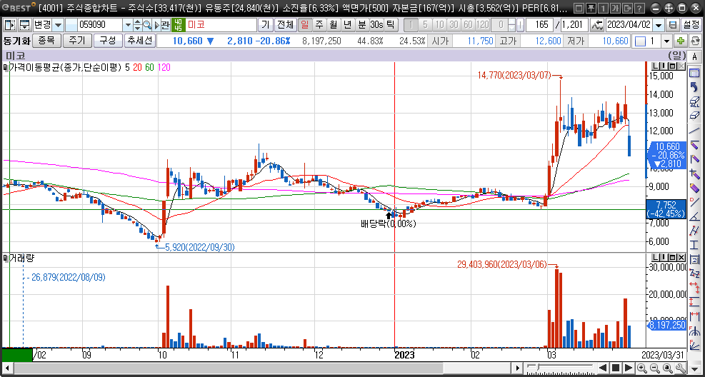 2023년 3월달초부터 미코의 주가가 상승하게 된 이유는