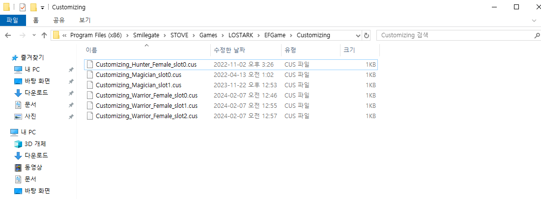 D:\Program Files (x86)\Smilegate\STOVE\Games\LOSTARK\EFGame\Customizing